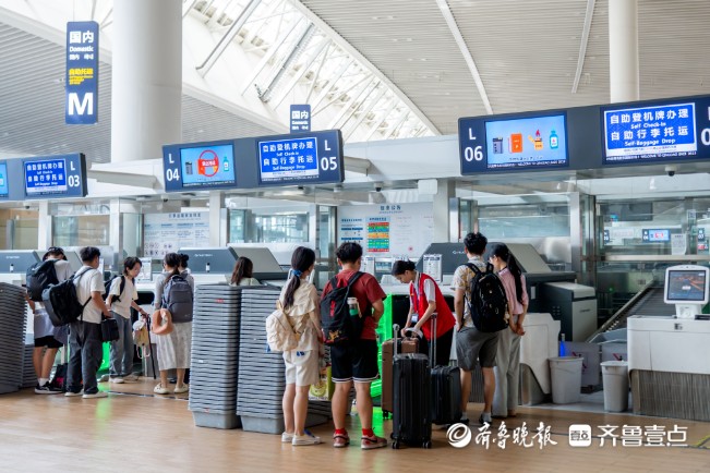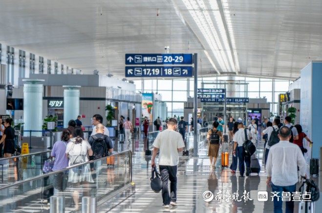 青岛机场动态增开值机柜台和安检通道,现场增派巡检与志愿服务力量,确保高峰时段高效有序;加强气象预警与航班协调,科学调整运行计划,提前部署应急预案,提升对突发天气的应对能力;特别关注首次乘机、老幼病残孕及晚到旅客等特殊群体,提供贴心精准的引导和帮助;境外来宾服务中心和问询台配备智能翻译设备,打通语言障碍,提升国际旅客出行体验。